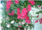 我が家はどこから見てもお庭のお花が見られるように設計されていますが、キッチンだけは小さな窓から見える薄いピンクと濃いピンクのアーチのつるバラだけなのです。